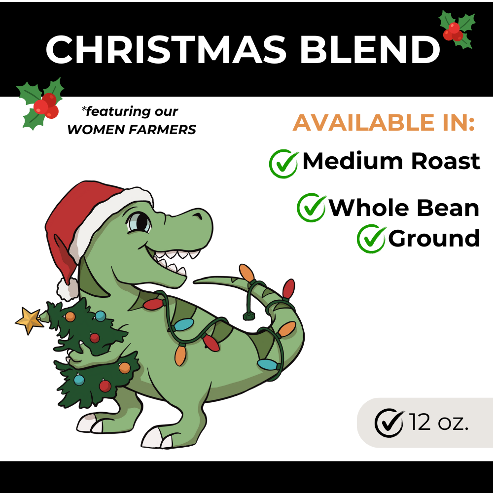The Christmas Blend features our women farmers, and the Coffee With Purpose Story Mug combines the story of Seed of Hope, Seed of Hope Coffee, and P-REX Coffee with custom graphics.